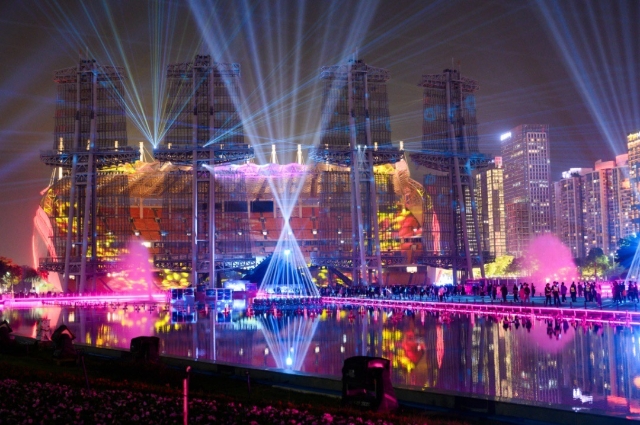 The two satellite venues are the riverfront area and Huangpu District. Specifically, the riverfront satellite venue encompasses 24 building facades along Yanjiang Road, Liede Bridge, Haixin Bridge, and the western area of Pazhou facade, while the Huangpu District satellite venue's central stage is located at the Science Square in Guangzhou Science City.