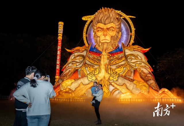 The 18m-tall "Floral Goddess" (簪花女神) and 16m-tall "Monkey King" (齊天大圣) are made by Zigong lantern artisans.