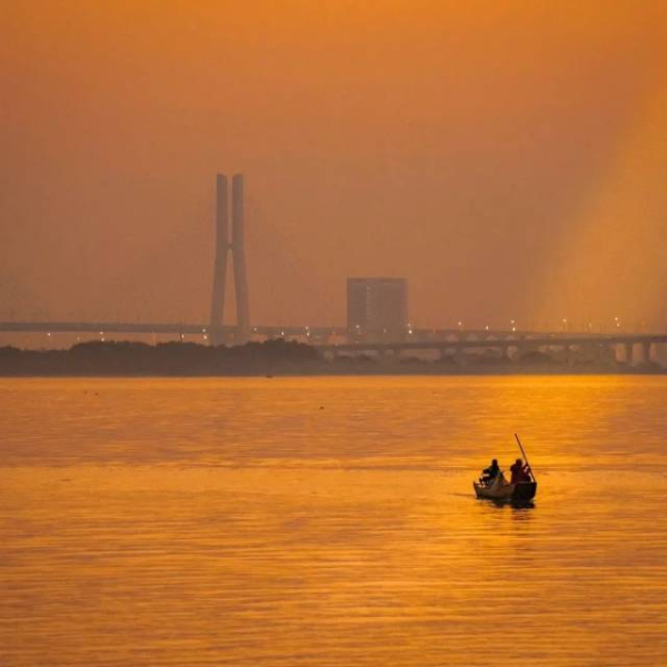At the Smart Super Levee, visitors can enjoy sunsets over the Pearl River estuary. The coastal structure combines flood protection with recreational space, offering panoramic views of the water.