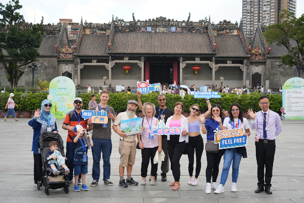 On the morning of July 11, twelve travelers from Australia, the Netherlands, Argentina, and Russia embarked on the first free transit tour group, spending half a day in Guangzhou. During the launch ceremony, they were also presented with a piece of Guangdong embroidery as a welcoming gift.