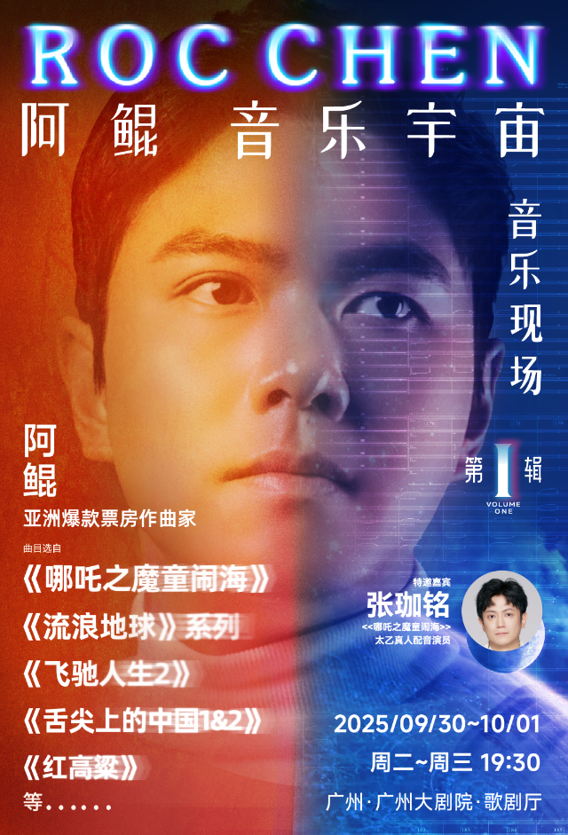 The "Roc Chen Universe" concert, led by Roc Chen—Asia's first film composer to surpass 10 billion yuan in box-office credits—together with his live band, will be staged in the Opera Hall from September 30 to October 1. The program features reimagined themes from popular films, including "Ne Zha 2."