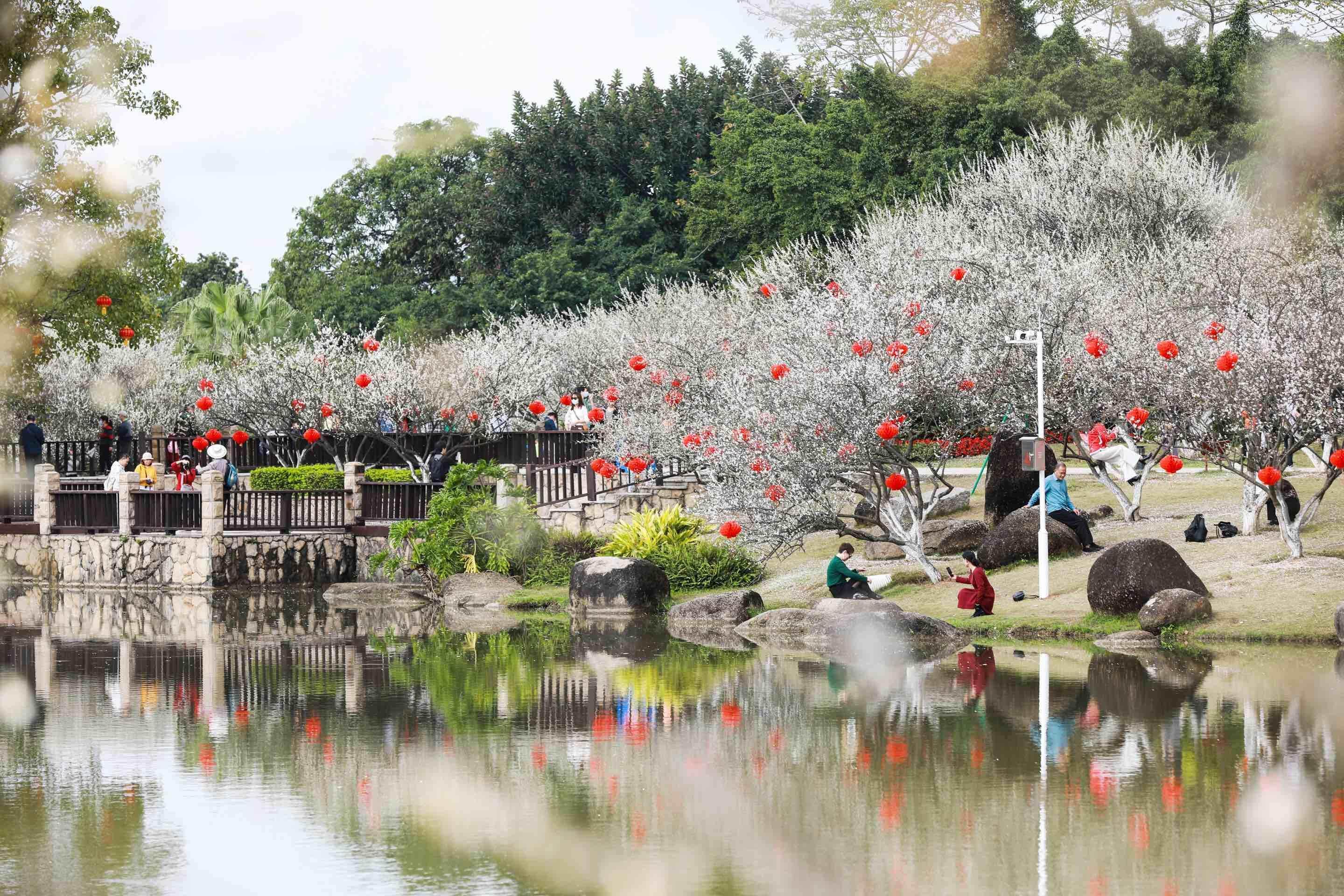 公園的“蘿崗香雪”美景源于悠久的青梅種植歷史,宋代起便種梅,獨特自然條件讓梅花常開二度。數千株不同品種梅花歲末年初競相綻放,白梅如雪、紅梅似霞、粉梅若桃,漫山遍野繁花似錦,宛如瑞雪翻飛,色香俱絕。