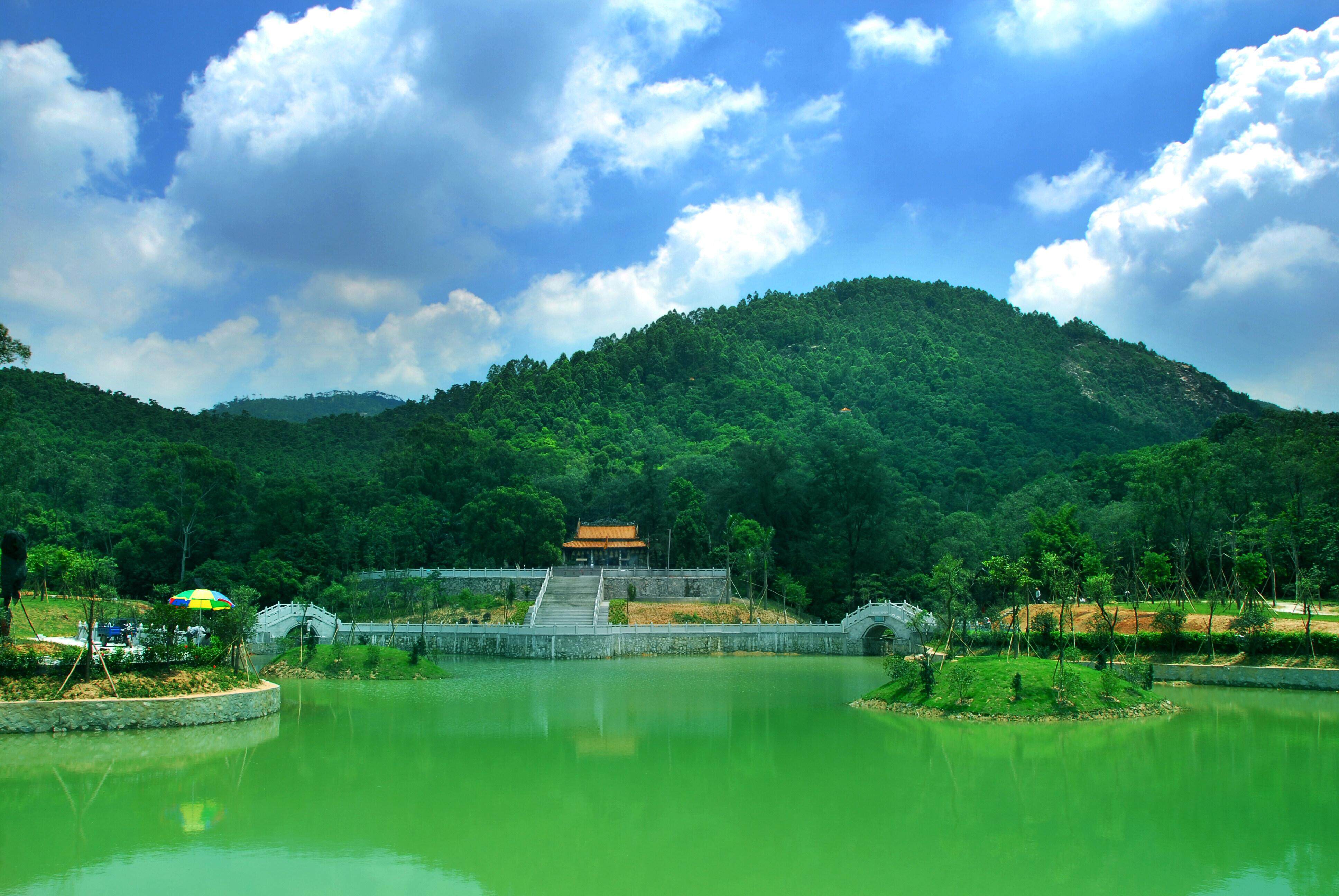 盤古王公園原名盤古王山,“盤古神蹤”是“花都新八景”之一。盤古王廟(盤古神壇)建于清嘉慶十四年(1809年),坐落于盤古王半山腰,嘉慶二十四年(1819年)移建于山下,香火不絕,遠近聞名。每年的盤古王誕和重陽節都吸引數以萬計的游客前來朝拜、游覽、登高。園內還保留著龍口泉、半山亭等歷史遺跡。其中龍口泉傳說為盤古王開掘,泉水清冽甘甜,承載著祛病消災的美好寓意。盤古王公園門樓設計獨具匠心,外粗內細的立柱象征盤古降龍伏獅的傳說,五天面結構寓意五行萬物,門樓橫額與對聯由嶺南畫派大師及書法名家題寫,彰顯文化厚度。讓游客在感受盤古開天文化的同時,也能親近山水、放松身心。