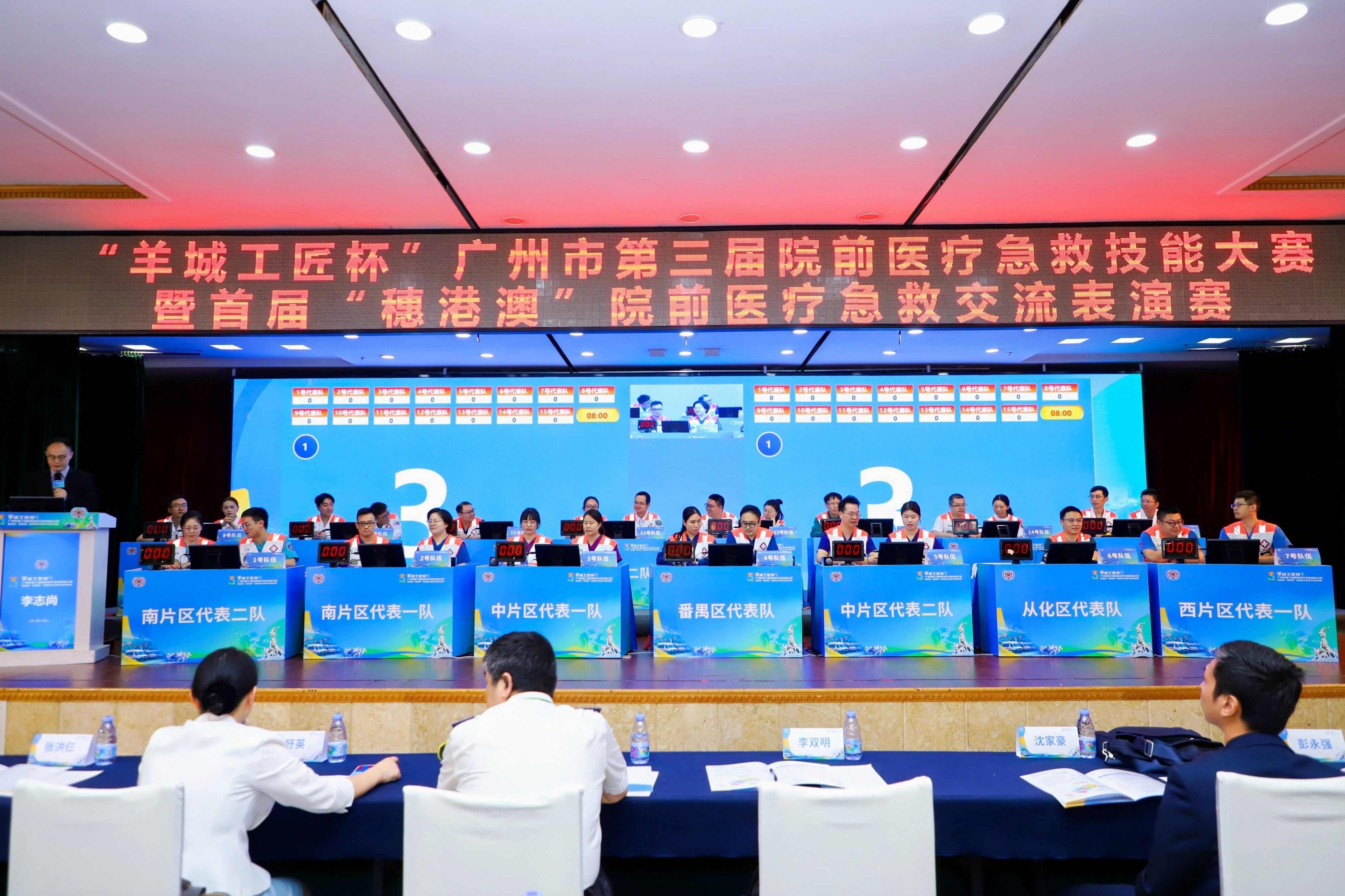 4月26日,由廣州市衛生健康委員會、廣州市總工會主辦,廣州市急救醫療指揮中心等單位承辦的“羊城工匠杯”廣州市第三屆院前醫療急救技能大賽暨首屆“穗港澳”院前醫療急救交流表演賽在越秀區舉辦。