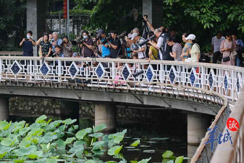 近日,廣州荔灣湖公園荷塘里,一對誕下8個蛋的小??夫婦,成為城中“熱話”。5月6日下午,記者來到荔灣湖海山仙館的長廊,遠遠就見到荷塘邊圍滿了端著“長槍短炮”拍個不停的街坊,他們個個凝神“瞄準”,十分專注。