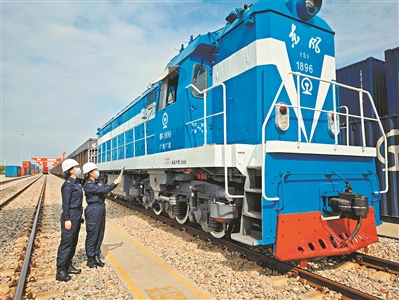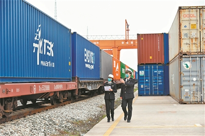 廣州海關所屬廣州車站海關關員對新年粵港澳大灣區開出的首列中歐班列實施監管