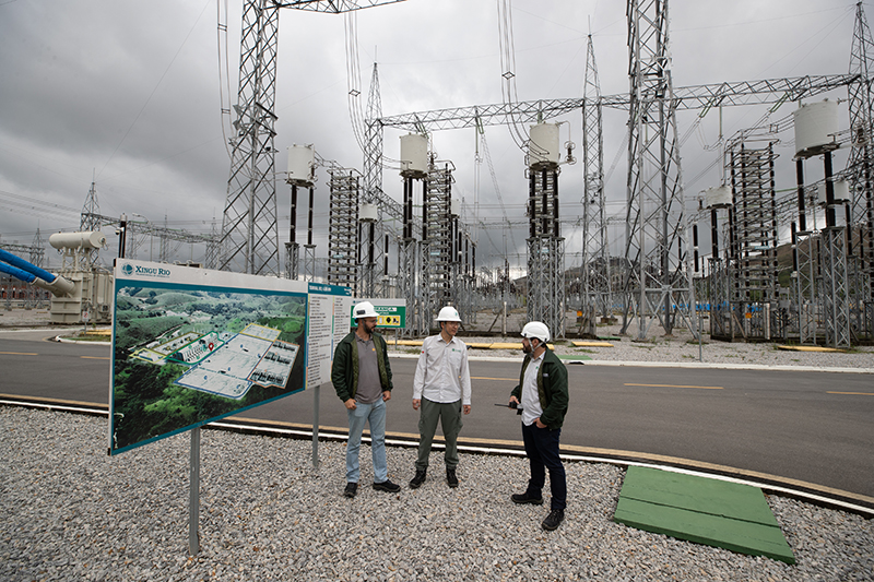 2022年9月30日,在巴西里約熱內盧美麗山特高壓輸電二期項目里約換流站,國網巴控公司換流站運維主管(中)和巴方人員交談。