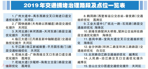 21日,2019年廣州市擁堵路段(節點)交通改善及治理工程施工總承包(標段一、標段二)開始招標,將對位于天河、荔灣、白云、海珠、越秀5個區的15個交通擁堵點進行改善及治理。