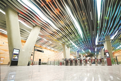彩虹橋站將為市民帶來哪些視覺亮點(diǎn)?記者了解到,彩虹橋站車站裝修充分挖掘所在區(qū)域駟馬涌、荔枝灣、流花湖深厚文化底蘊(yùn),以“南越彩虹,不讓姑蘇”為設(shè)計(jì)主題,在滿足于交通功能的基礎(chǔ)上,與區(qū)域文化特征相呼應(yīng),提升乘客與環(huán)境的交互體驗(yàn)及人文感受的需求。