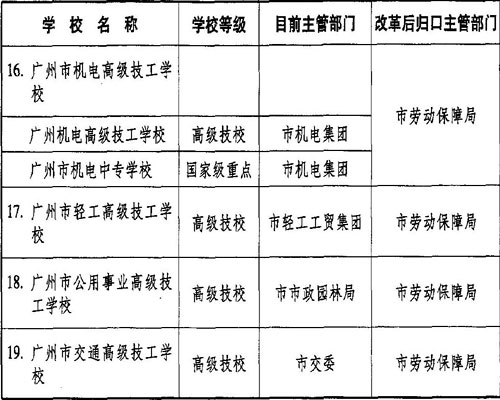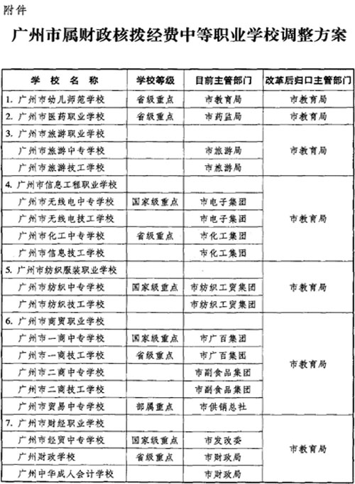 附件:廣州市屬財政核撥經費中等職業學校調整方案