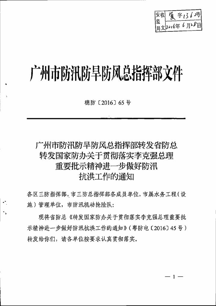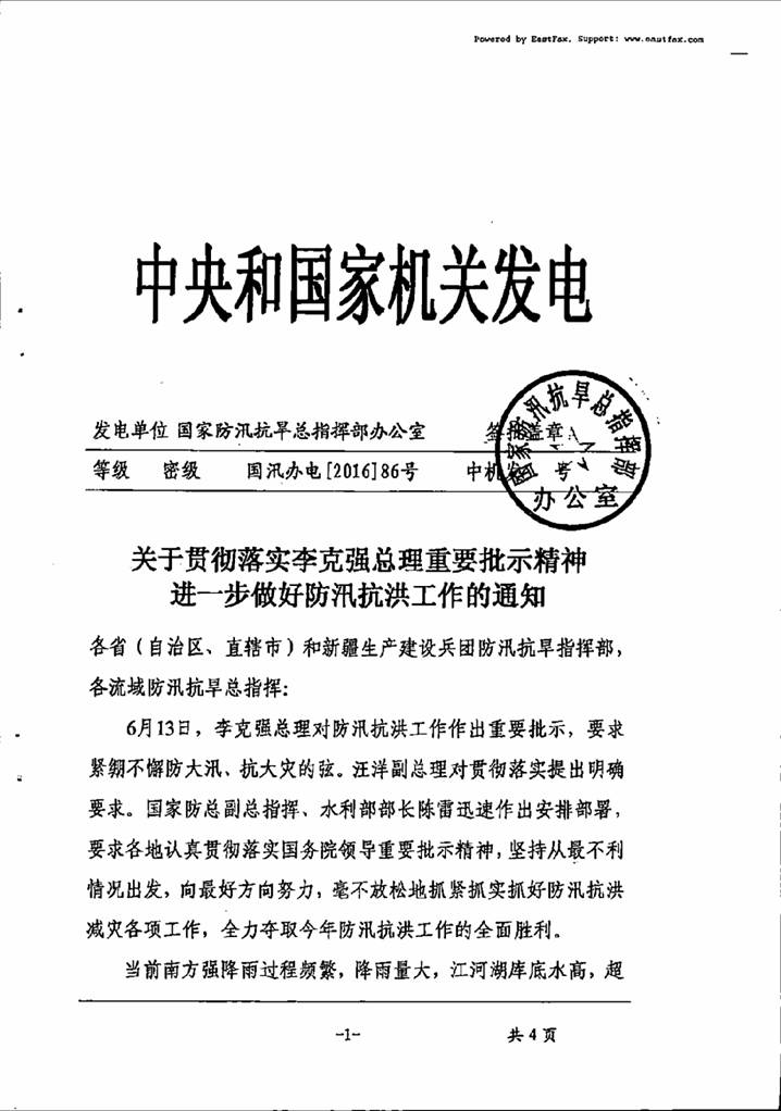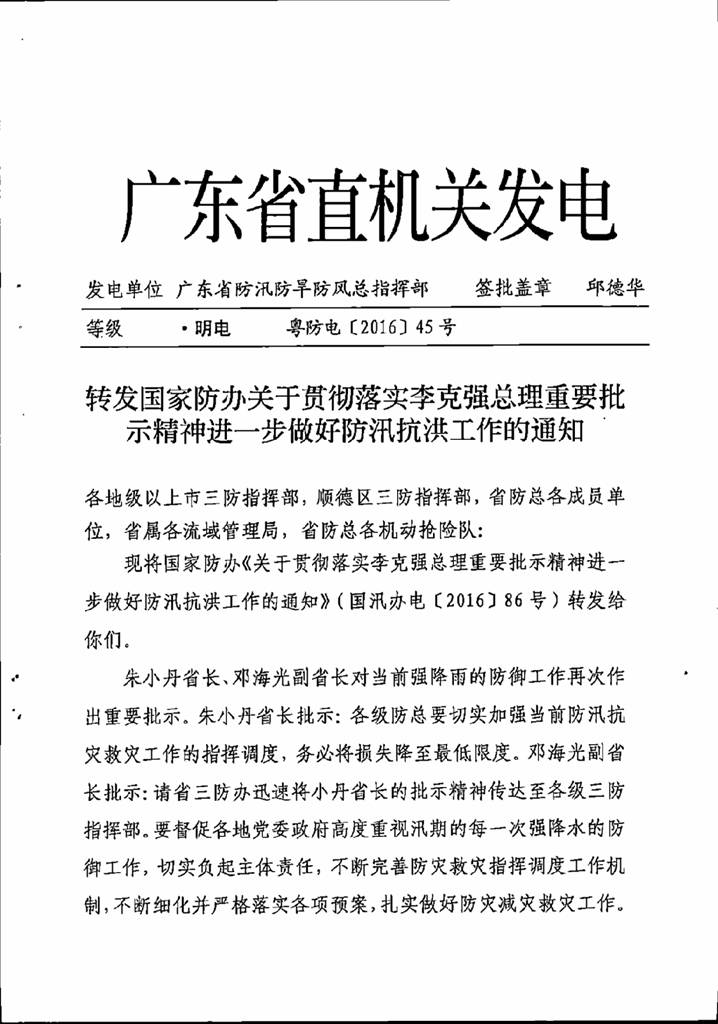 轉發國家防辦關于貫徹落實李克強總理重要批示精神進一步做好防汛抗洪工作的通知